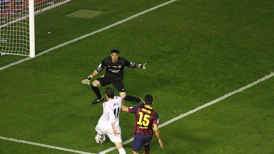 During his time in the Spanish capital, Bale's other most iconic moment was in the 2014 Copa Del Rey final against Barcelona. With the score 1-1 after 85 minutes, the winger knocked the ball past Marc Bartra down the outside, before running off the pitch and back on it to get the ball ahead of the defender, before carrying the ball into the box and finishing into the near post for the winning goal.