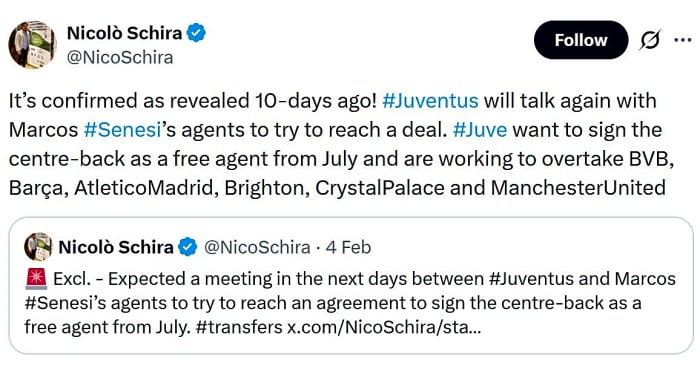 The Italian transfer insider notes that Bournemouth defender Marcos Senesi is speaking to a number of clubs ahead of becoming a free agent in the summer – but Chelsea aren’t among those listed.