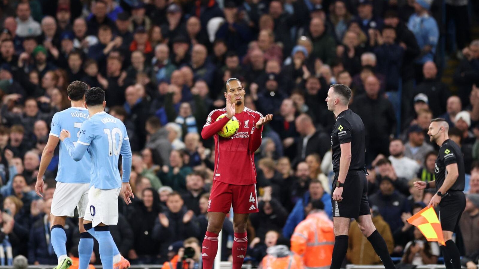 Even before that, Virgil van Dijk thought he’d levelled the game, only for his header to be ruled out for offside in what many have called a baffling decision.