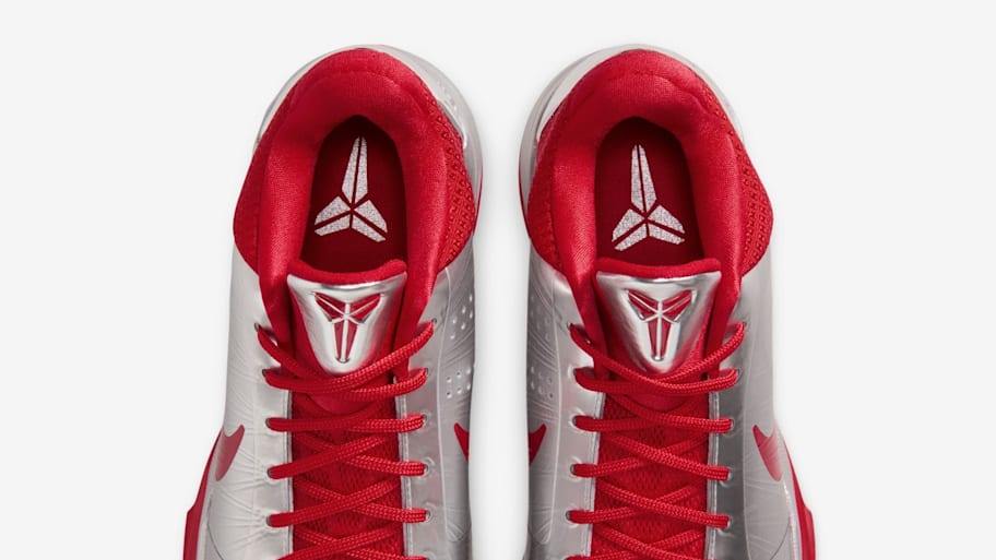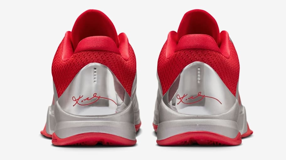 The "Rookie of the Year" colorway features a Metallic Silver upper with bold University Red accents throughout the shoe. The Nike Swooshes, Kobe logos, and Kobe signature pop off the shoe in University Red, while the back heels feature an extra-glossy shade of Metallic Silver.