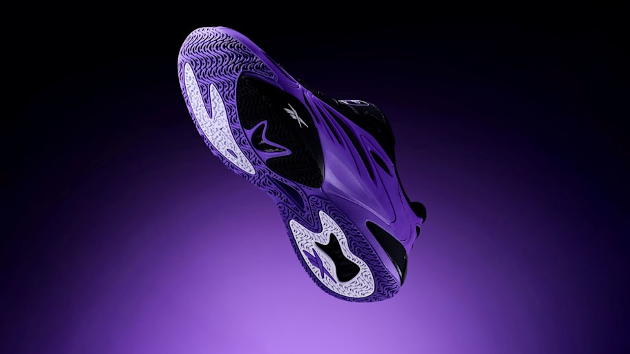 The 'Charm City' colorway sports a Solar Purple exoskeleton upper contrasted by black ventilated mesh panels. Meanwhile, Reese's name, Reebok branding, and the outsole shine in white. Lastly, Reese's signature logo pops off the black tongue in Solar Purple.