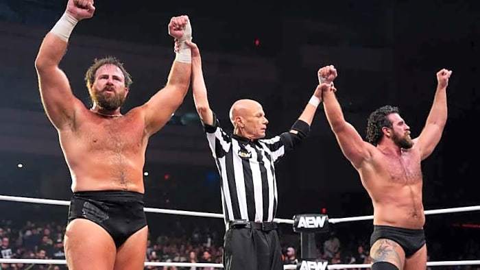 Before they challenge FTR for the AEW World Tag Team Championships next week, the newly minted team of Mark Davis and Jake Doyle (courtesy of Don Callis) will be up against AEW's newest signees Jordan Oliver and Alec Price. Oliver and Price had a good showing versus FTR on Dynamite before eventually falling short against the champs. Will they face the same fate against the super heavyweight powerhouse team of Davis & Doyle?