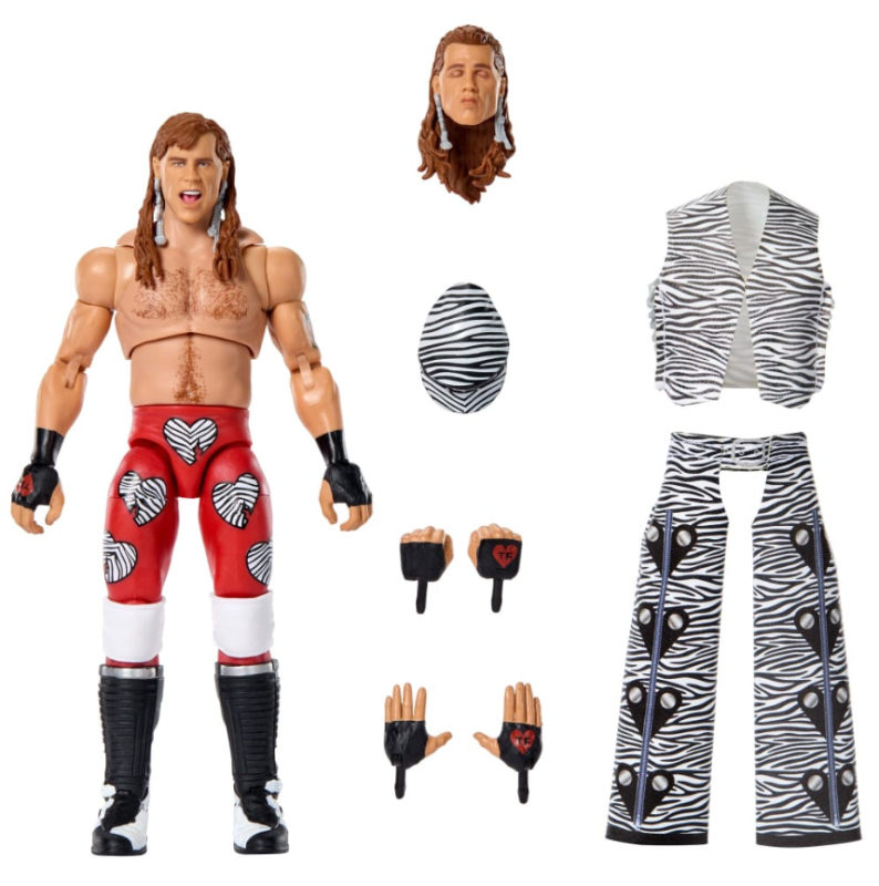 The figure nails HBK's white-and-red heart attire from his first Rumble win. Collectors praise these standout elements: