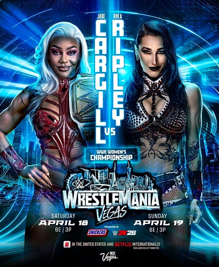 Jade Cargill and Rhea Ripley have been comparing their muscular physique and stealing each other’s lines while beefing on social media over backstage locker room drama. Hopefully, they don’t get into a shoot-out fight while stealing each other’s maneuvers. While this feud seems eminently surface-level from a storyline standpoint, this match is solid on paper and will be a spectacle for the casual fans. At WrestleMania 42, Rhea Ripley should pass the torch to Jade Cargill. Here is why Jade Cargill should retain the WWE Title.